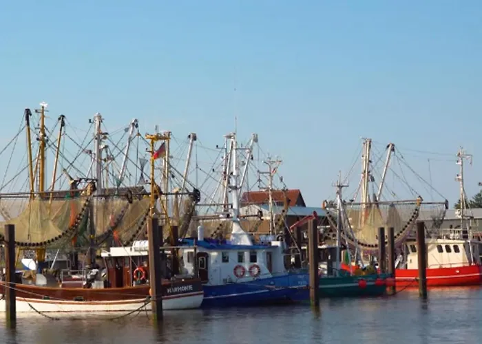 A mini-kitchen at this accommodation includes an electric kettle, a refrigerator, and an oven. Fedderwardersiel Ort bus station is a 10-minute stroll away.